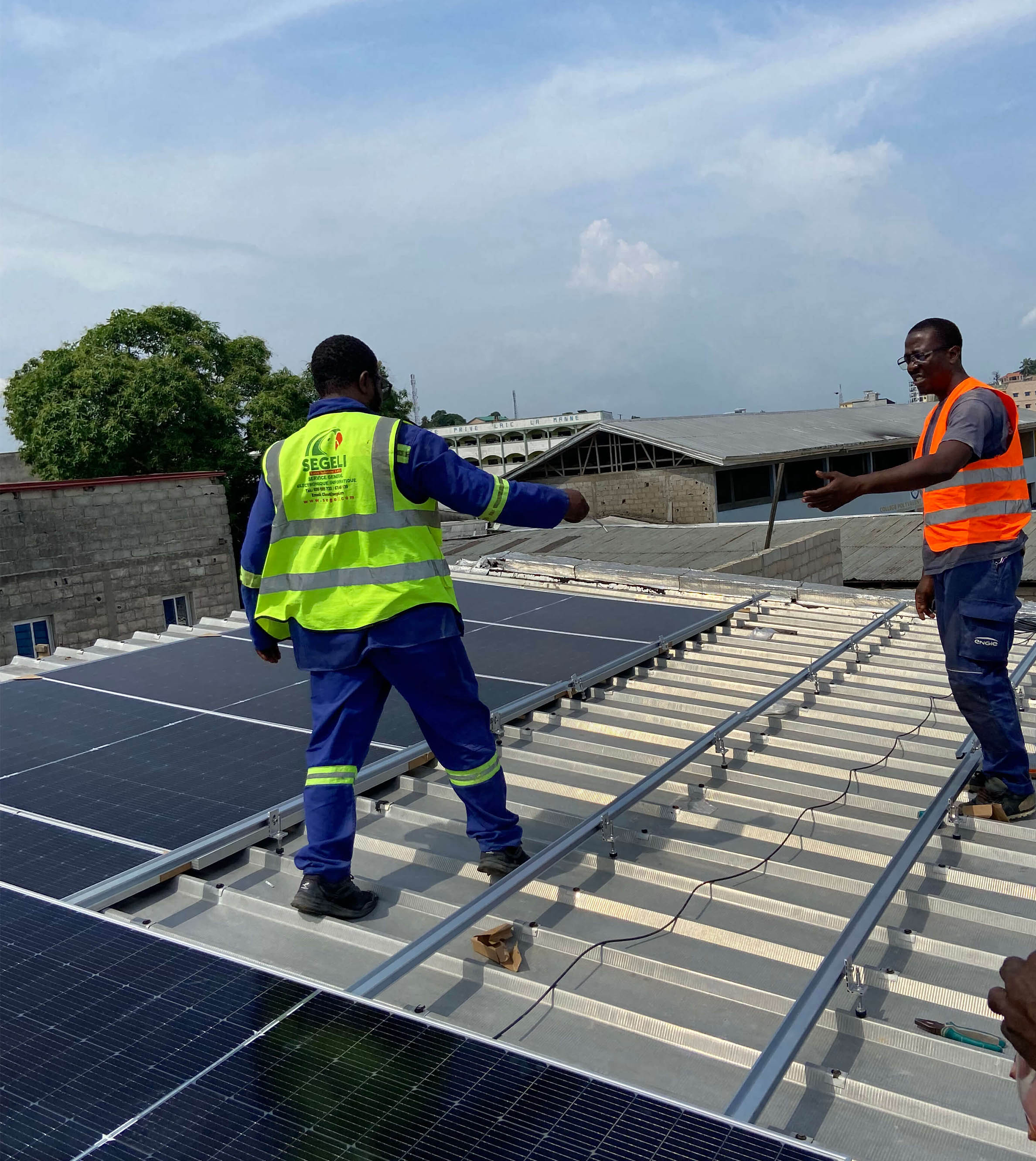 Installation d'une pompe solaire de 1100W alimenté par deux plaques photovoltaïques de 710W chacune.
