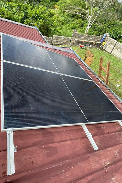 Installation d'un système solaire de 8,2KW , comportant 16 panneaux photovoltaïques et une batterie de 16Kwh.